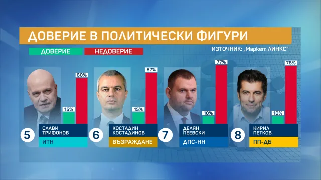 „Маркет ЛИНКС“: Кирил Петков и Пеевски са с изравнени рейтинги