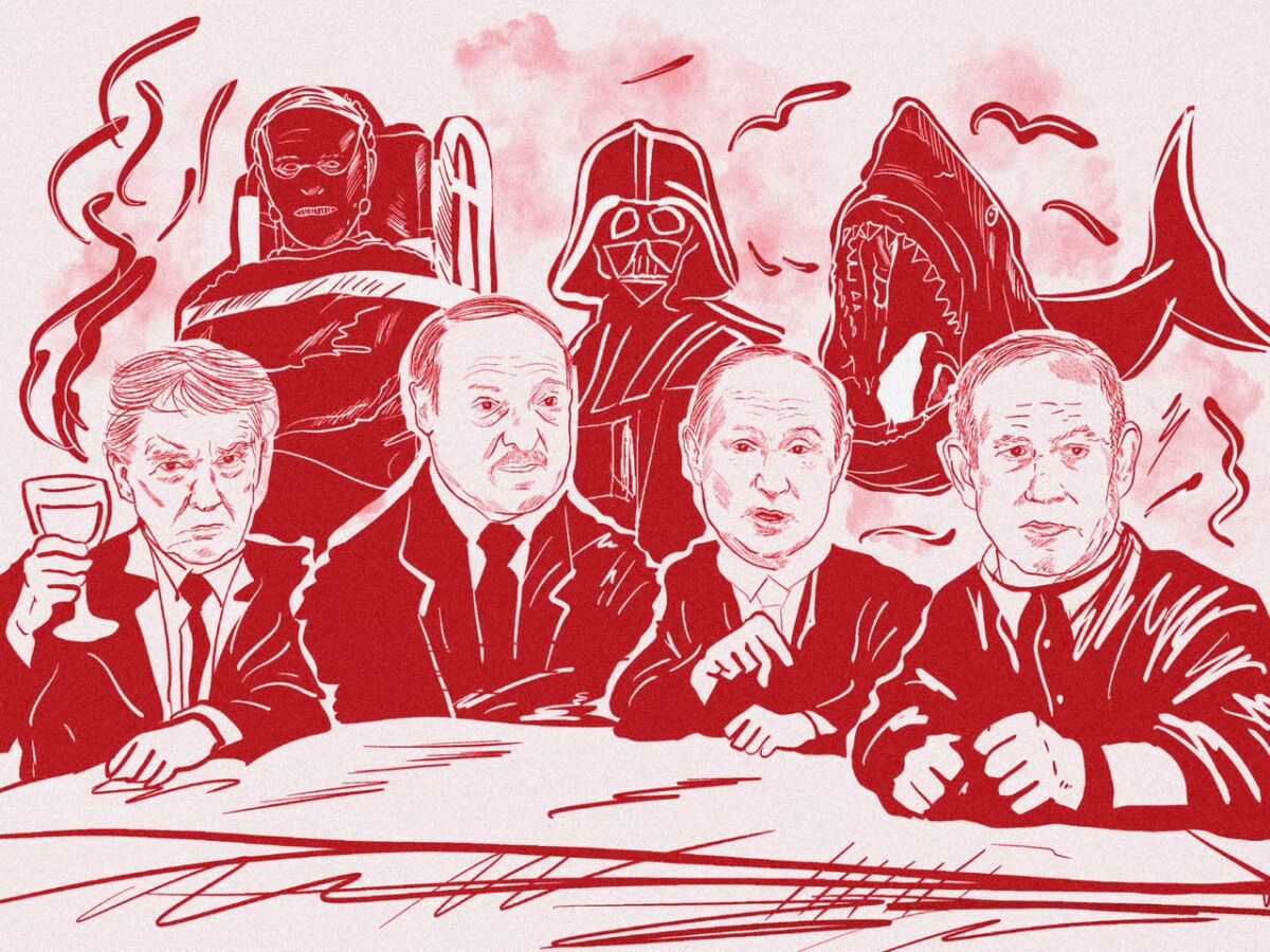 Към момента на писане, Дарт Вейдър, Ханибал Лектър и акулата от „Челюсти“ все още не бяха отговорили на поканите си да се присъединят към Съвета на мира на Доналд Тръмп. | Илюстрация от Наталия Делгадо в рубриката за сатира на Politico DECLASSIFIED: