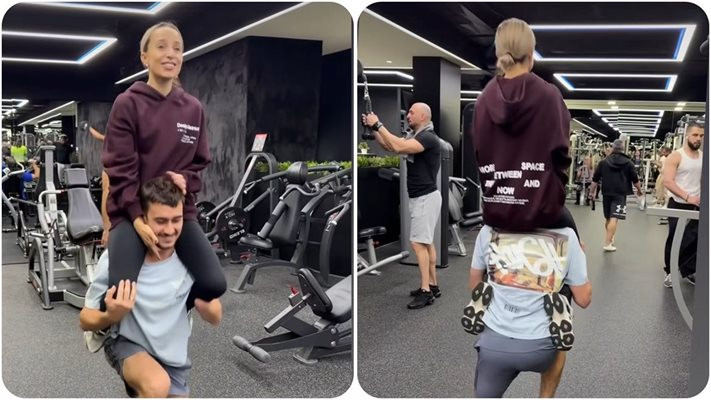 А днес самият Иво показа това, което Антоанет Пепе иска да прави с нея. И виждаме, че го изпълнява отлично. А именно – да я вдига на раменете си, докато едновременно с това прави клекове – у дома или във фитнеса. Така Карамански заяквал още повече, а и на Пепето й било голям кеф, седнала върху раменете му.