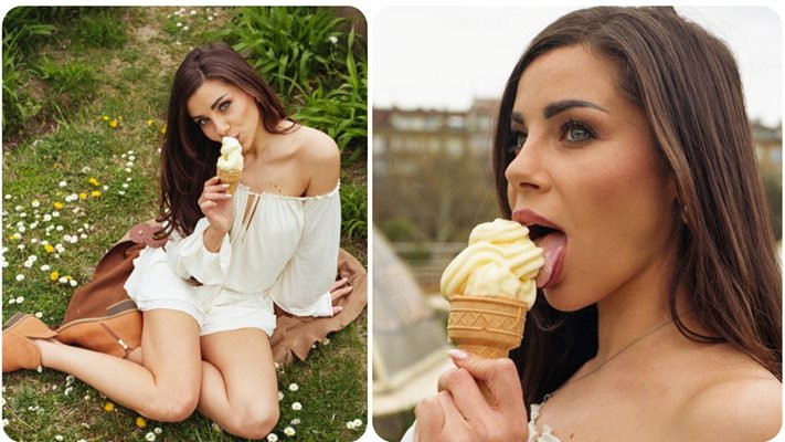 Последното, с което взриви нета, е показното „как го ближе“. Сладолед, разбирайте, но идеята хич не е кулинарна. „Тя е сладка, но не е наивна“, пише над кадрите Маринкова, а посланието е ясно.