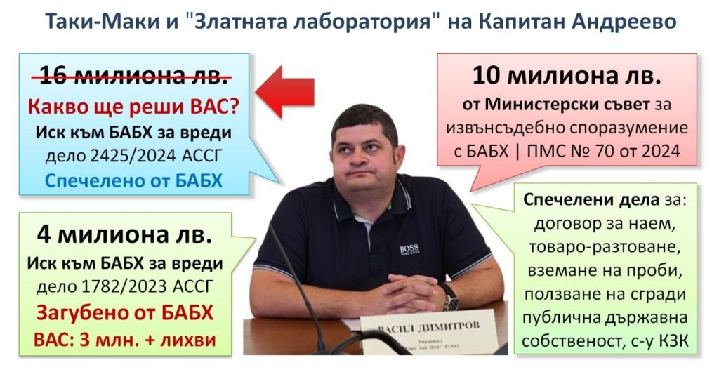 Описаната фактическа обстановка поразително прилича на изложеното в Решение № 2614 от 18 април 2024 г. на съдия Вяра Русева от Административен съд – София-град. С въпросното решение държавата е осъдена да плати над 4 милиона лв. обезщетение на “златната лаборатория” на Капитан Андреево “Евролаб 2011” ЕООД за претърпени имуществени вреди. Казусът е обстойно описан е в публикация на BIRD.BG.